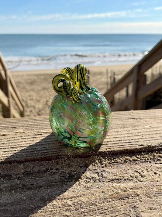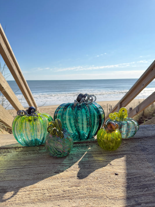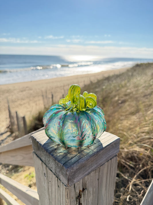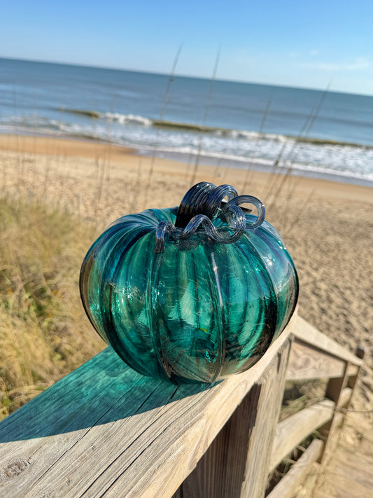 Handblown Glass Pumpkin | Medium Ombre Teal/Green
