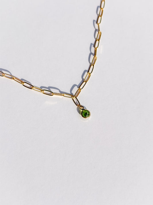 Green Crystal Gold Fill Paperclip Chain Necklace
