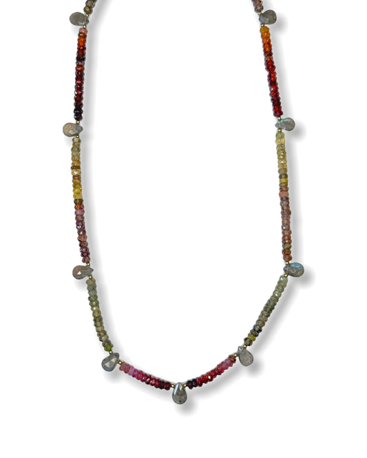 Blue Apatite, Rose Quartz + Tourmaline Necklace