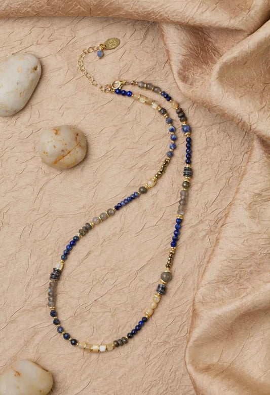 Lapis Lazuli, Pyrite, Pearl + Sodalite Necklace
