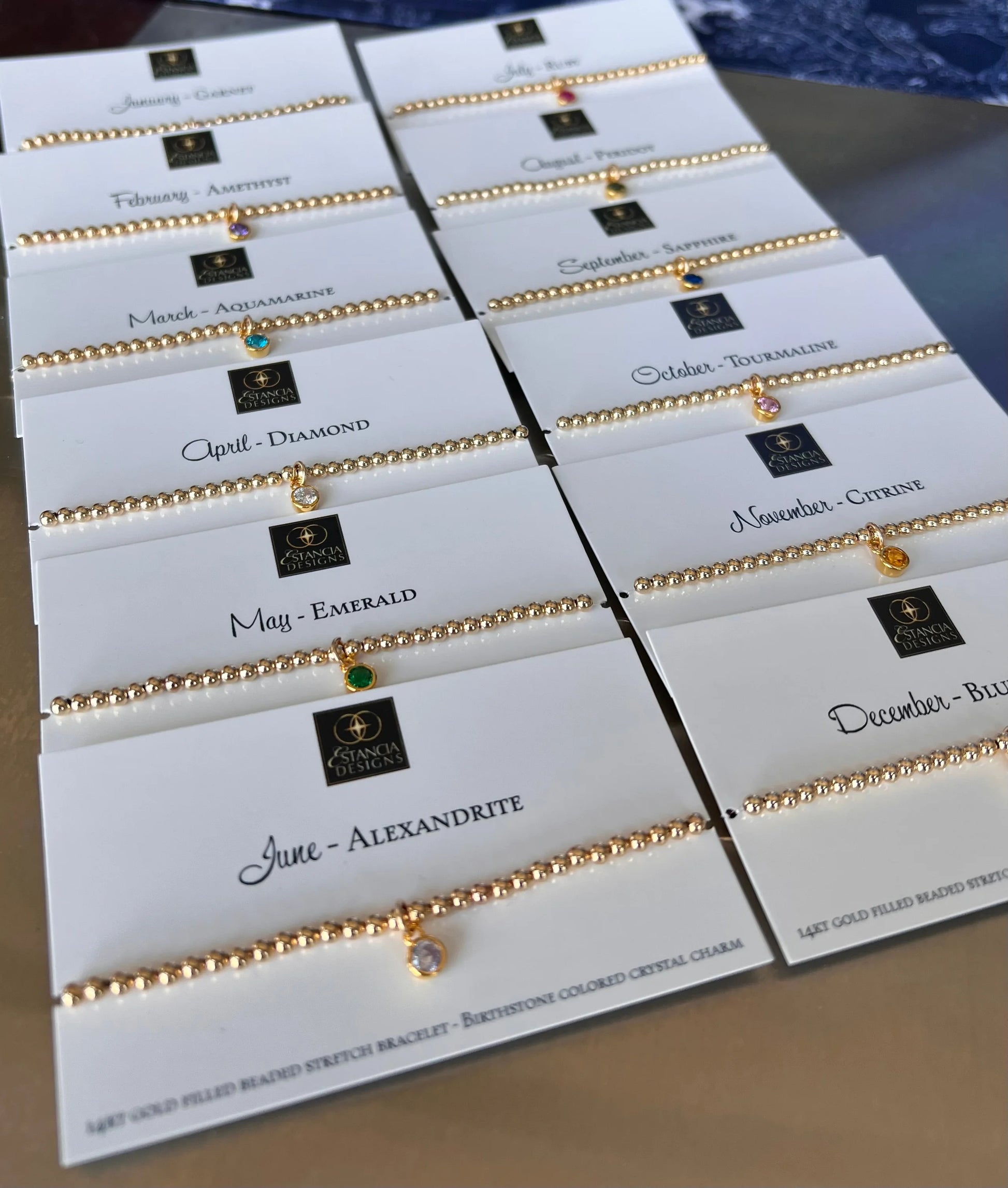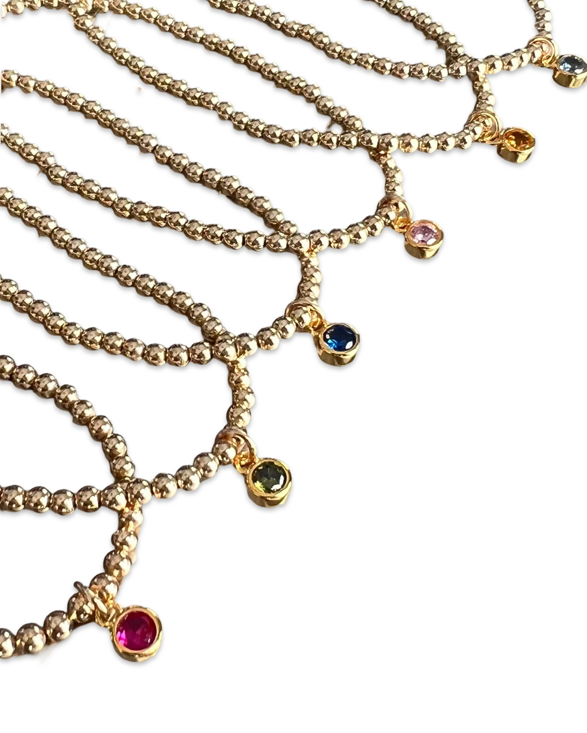 One of our best selling gifts! Wear as a stack or alone, these bracelet make the perfect gift. Available in 14k gold fill and sterling silver. Elastic beaded bracelet for a comfortable and versatile fit.
