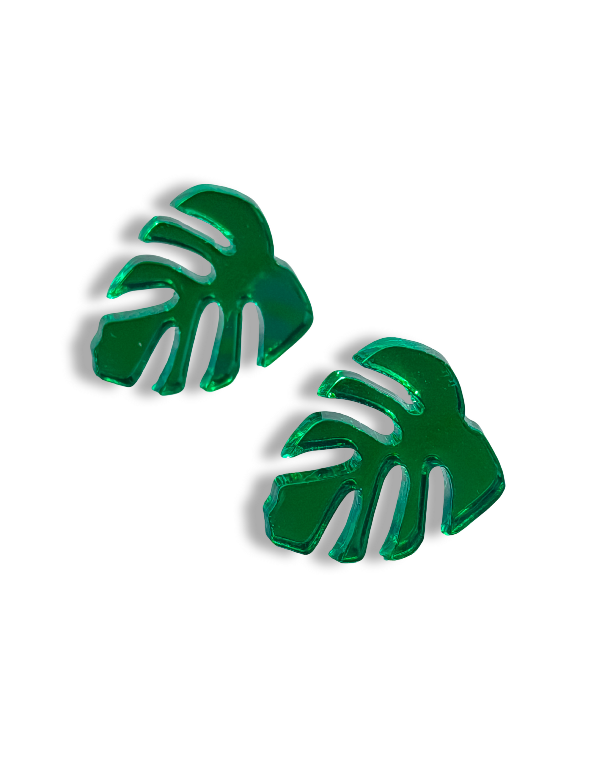 These lightweight palm leaf earrings are handcrafted in North Carolina using acrylic and hypoallergenic stainless steel posts.