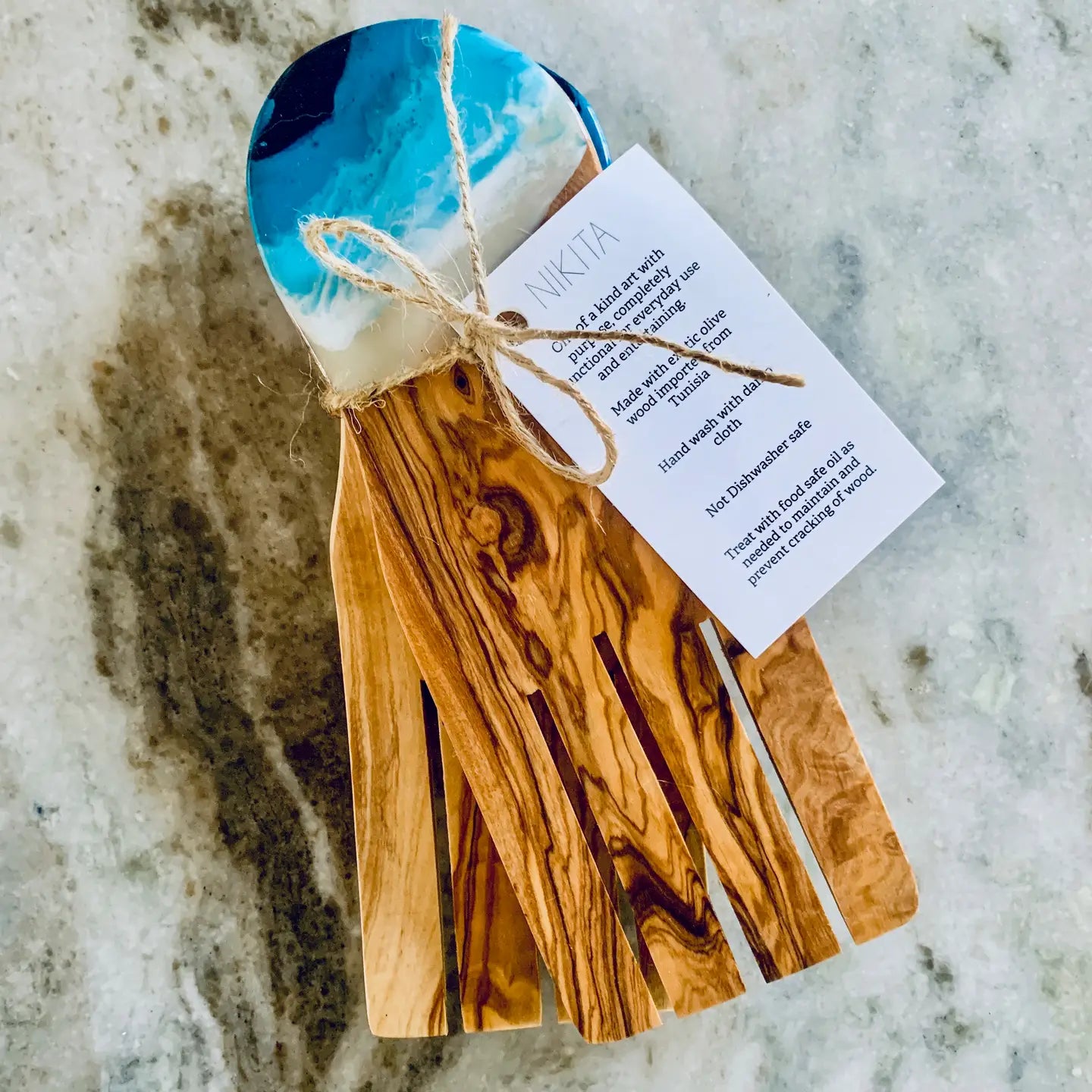Beautifully hand crafted in New York these salad hands are made from olive wood and Resin to complete the look of the ocean right in your kitchen!