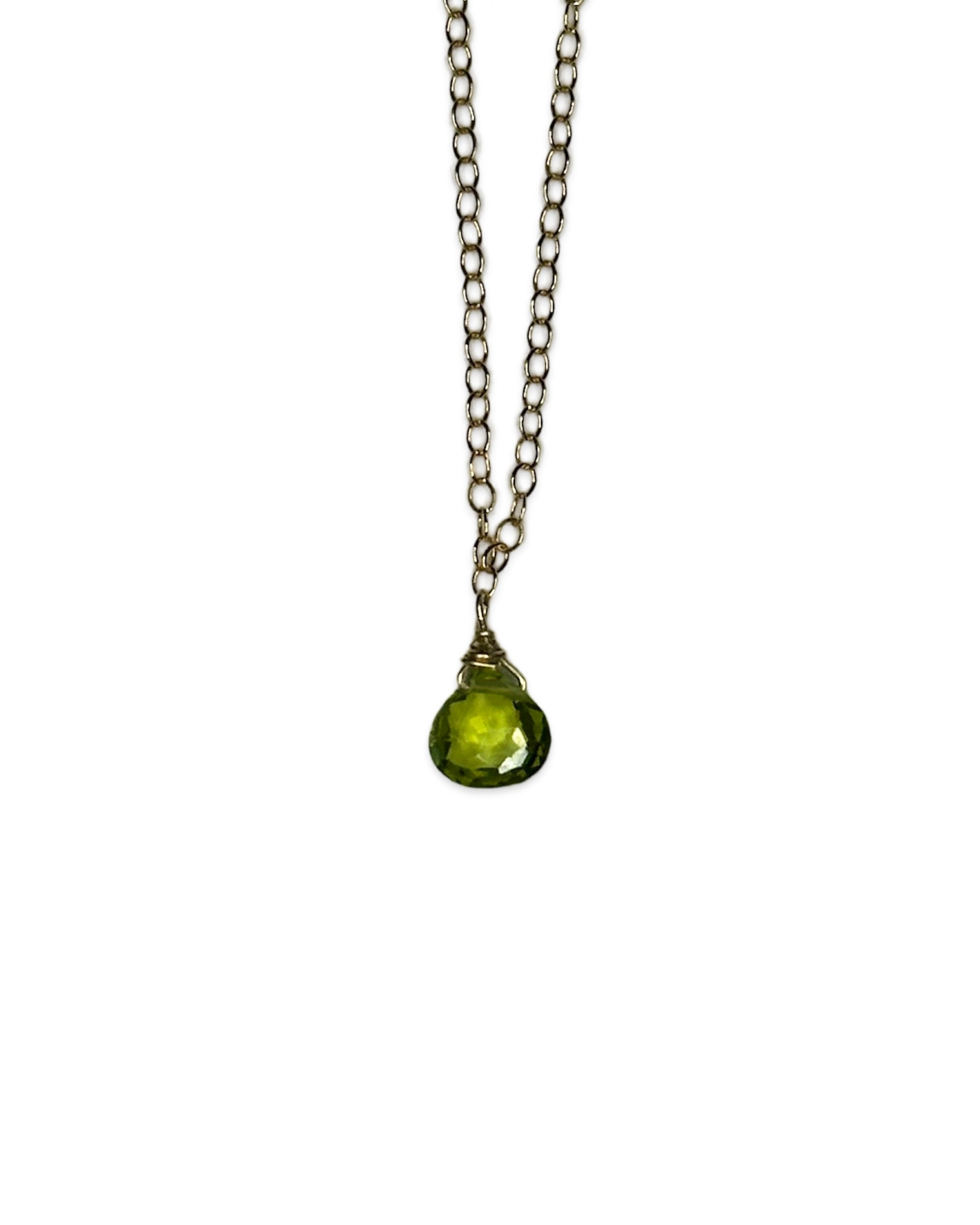 6mm genuine peridot stone on an 18” gold fill chain. Handmade in California USA. August birthstone.
